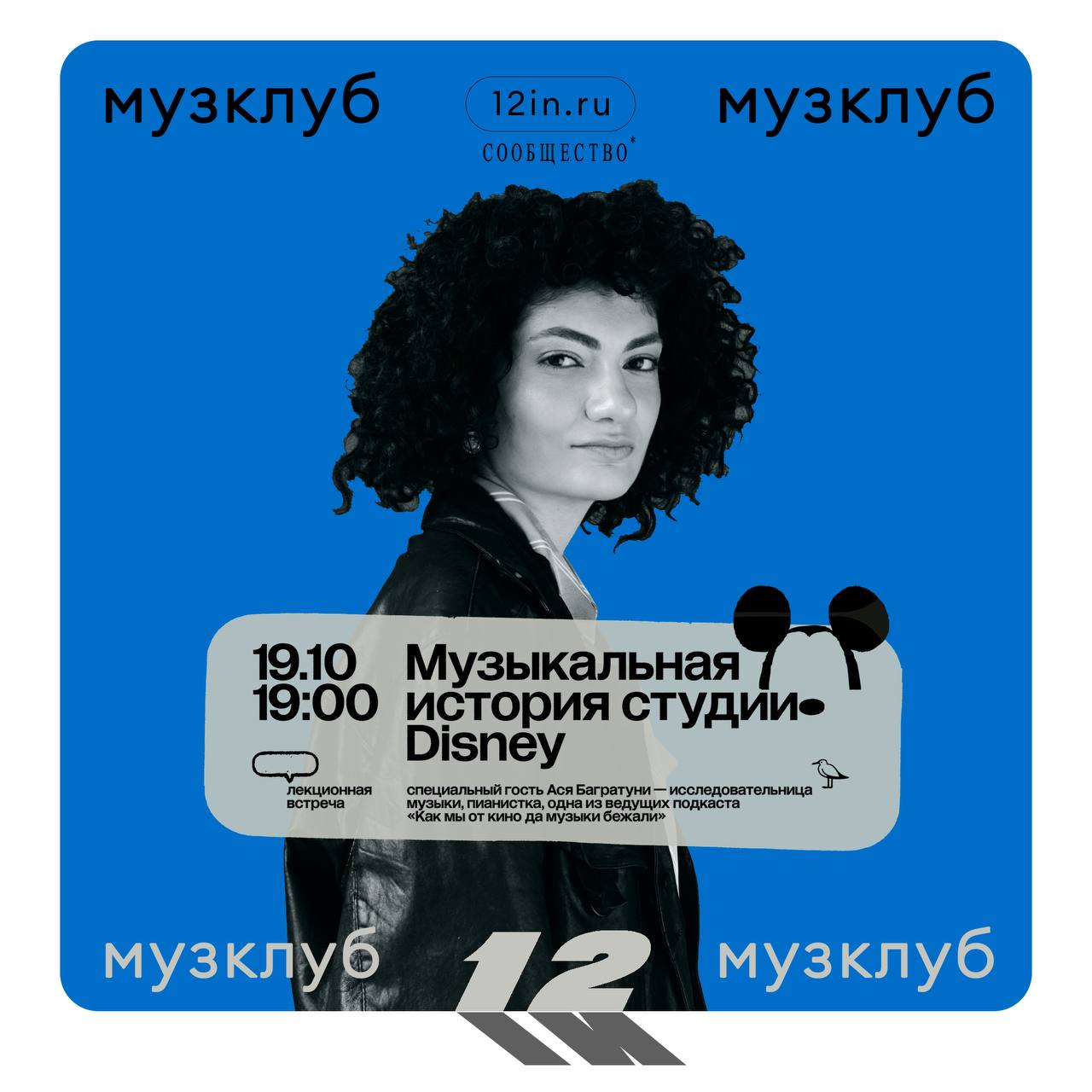 В ближайшую субботу вас ждет очень интересная лекция, которая будет посвящена саундтрекам к анимационным фильмам студии Disney, а лектором выступит великолепная Ася Багратуни — исследовательница музыки, пианистка, одна из ведущих подкаста “как мы от кино да музыки бежали". (https://t.me/howweranaway) На лекции мы вместе с Асей рассмотрим, как джаз, бродвейские мюзиклы, классическая музыка и народные мотивы повлияли на музыкальный стиль студии и заодно послушаем пластинку, выпущенную к 100-летнему юбилею Disney.