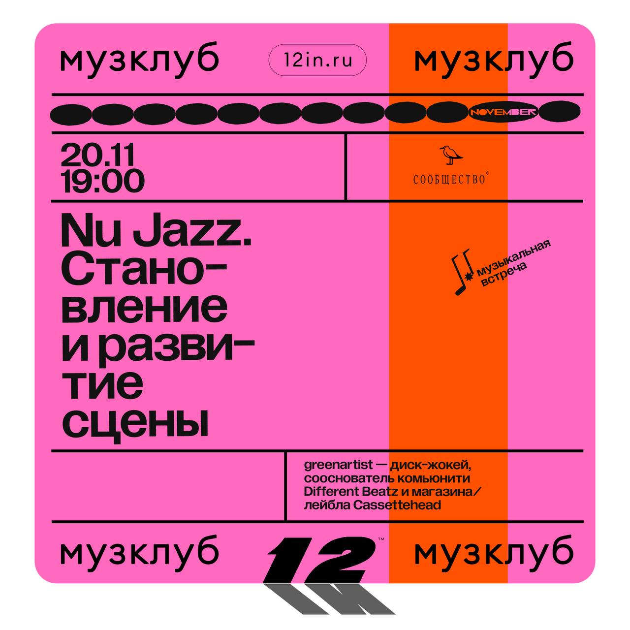 “В конце 1990-х-начале 2000-х в электронной музыке оформляется новое течение, связанное с очередным поколением музыкантов, открывших для себя джаз. Но джаз в чистом виде они играть не стали, а синтезировали его с разными стилями - кто с соулом и хип-хопом, кто с хаусом, а кто и с драм-н-бейсом. Было интересное время, когда продюсеры придумали что-то новое на стыке полудюжины стилей. Поговорим о ключевых фигурах нью-джаза и смежных сцен, о связи с эсид-джазом и нео-соулом - и конечно, о броукен-бите. Калейдоскоп имен, лейблов и стран. Джайлз Питерсон (Gilles Peterson), Jazzanova, 4hero, Bugz In The Attic, Seiji, Domu, Андреас Сааг, Compost Records, Brownswood, Rhythm Section и даже Madlib!