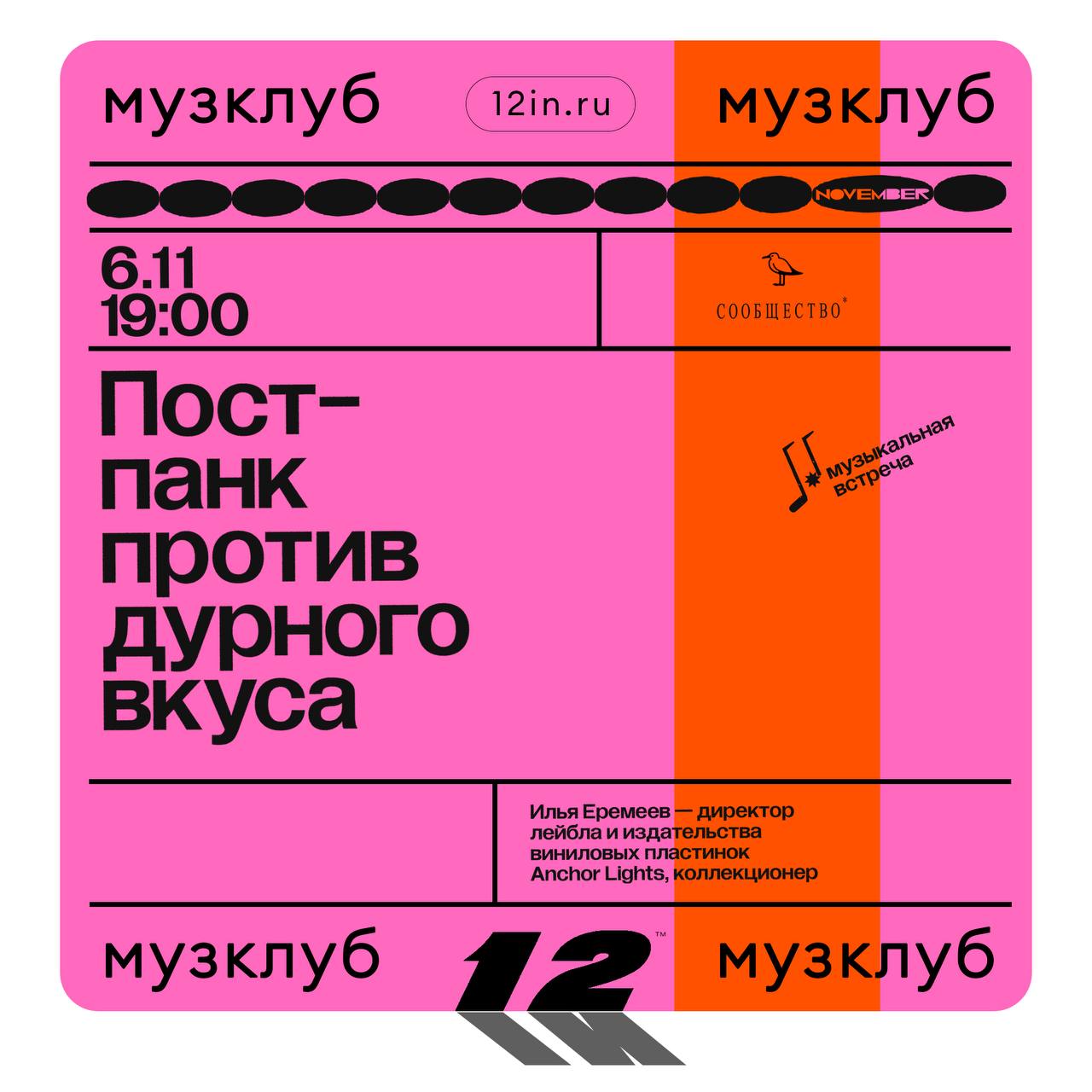 Друзья, уже завтра пройдёт наш очередной музклуб, темой которого будет “Пост-панк против дурного вкуса”. Лектором в этот вечер выступит Илья Еремеев - диджей, коллекционер и основатель лейбла Anchor Lights.